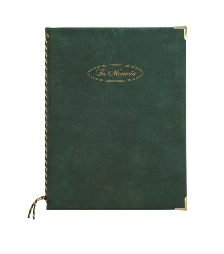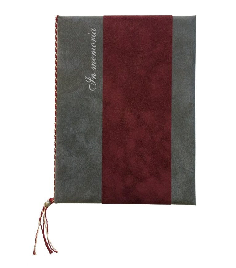 con tasca, cordoncino, angolari, stampa “in memoria” in oro,